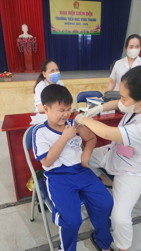 🏥 Sáng ngày 23/10/2025, Trường Tiểu học Vĩnh Thạnh phối hợp với Trạm y tế tổ chức tiêm bổ sung vắc xin Uốn ván – Bạch hầu giảm liều (Td) Đợt 1 năm 2025 cho các em học sinh khối 2.